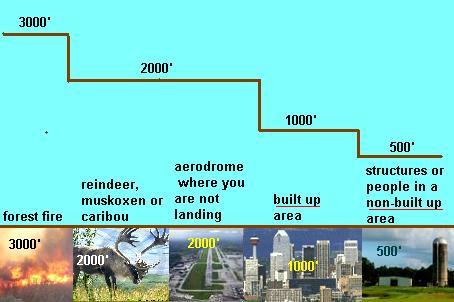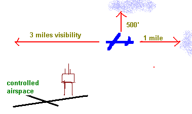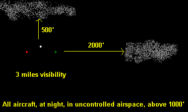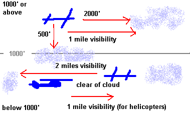 cloud, 1 mile horizontally from cloud, and 3 miles